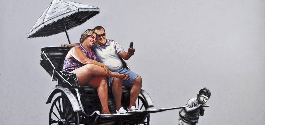 Själv tycker jag att ingen så väl som Banksy beskriver i bild vad social hållbarhet och ett hållbart och rättvist samhälle egentligen är. Ovan om vår ohållbara livsstil och bilden nedan som talar för sig själv.